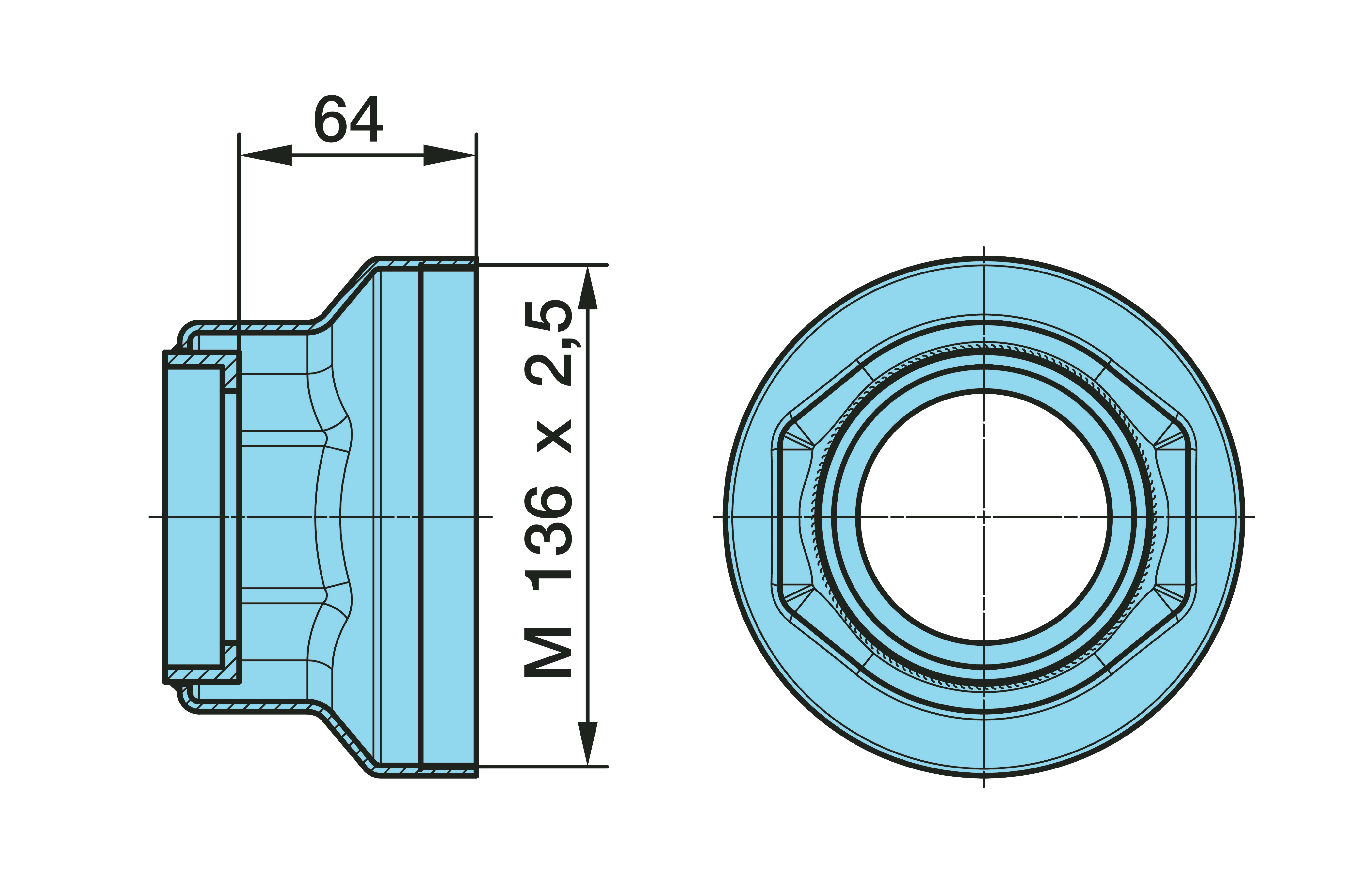 Dimension: M 136 x 2,5 / SW 110 / BPW