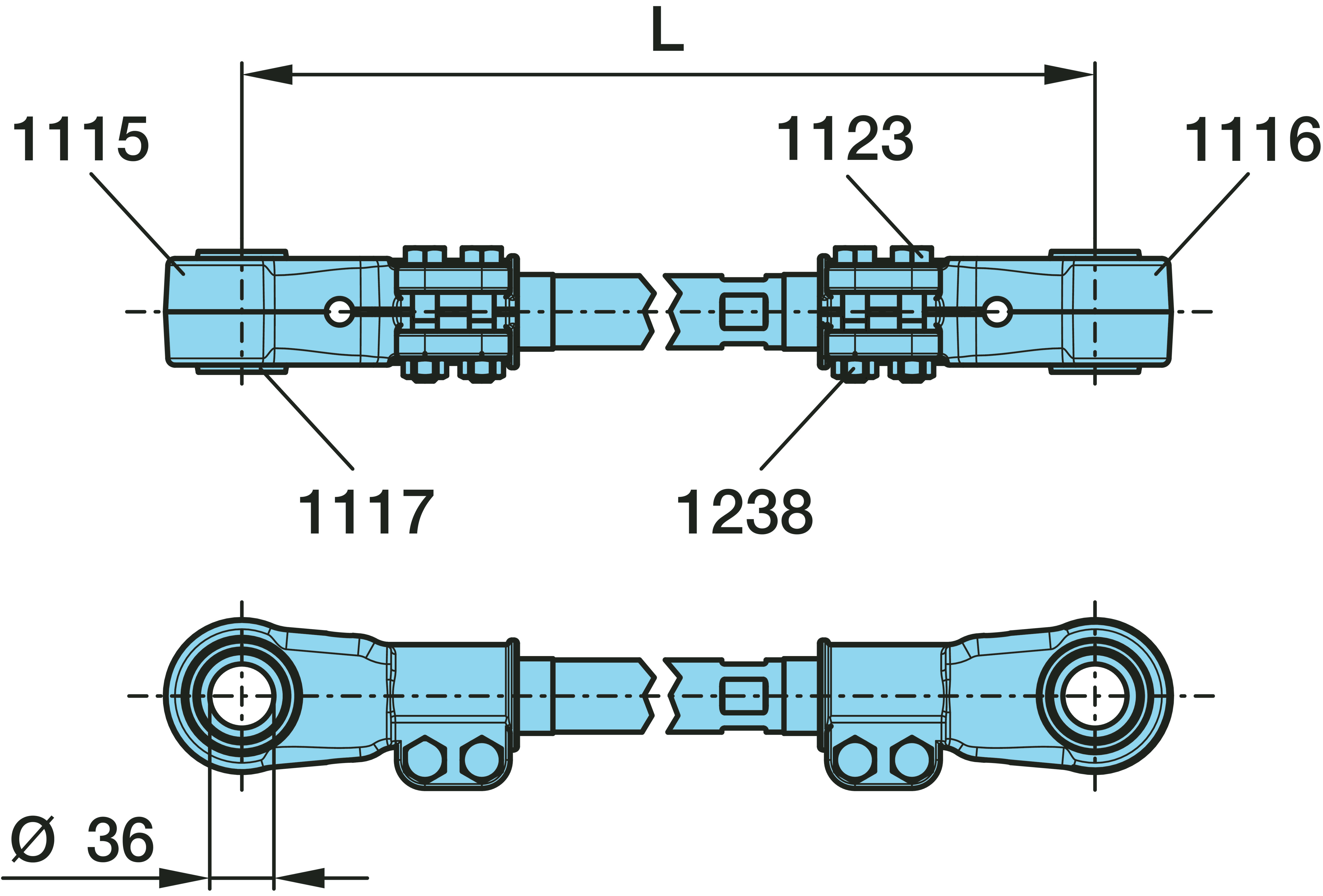 05.443.71.56.0 Tukivarsi, pyöräntuenta1 REAKTIOTANKO 455-495 SÄÄD. 36MM helalla