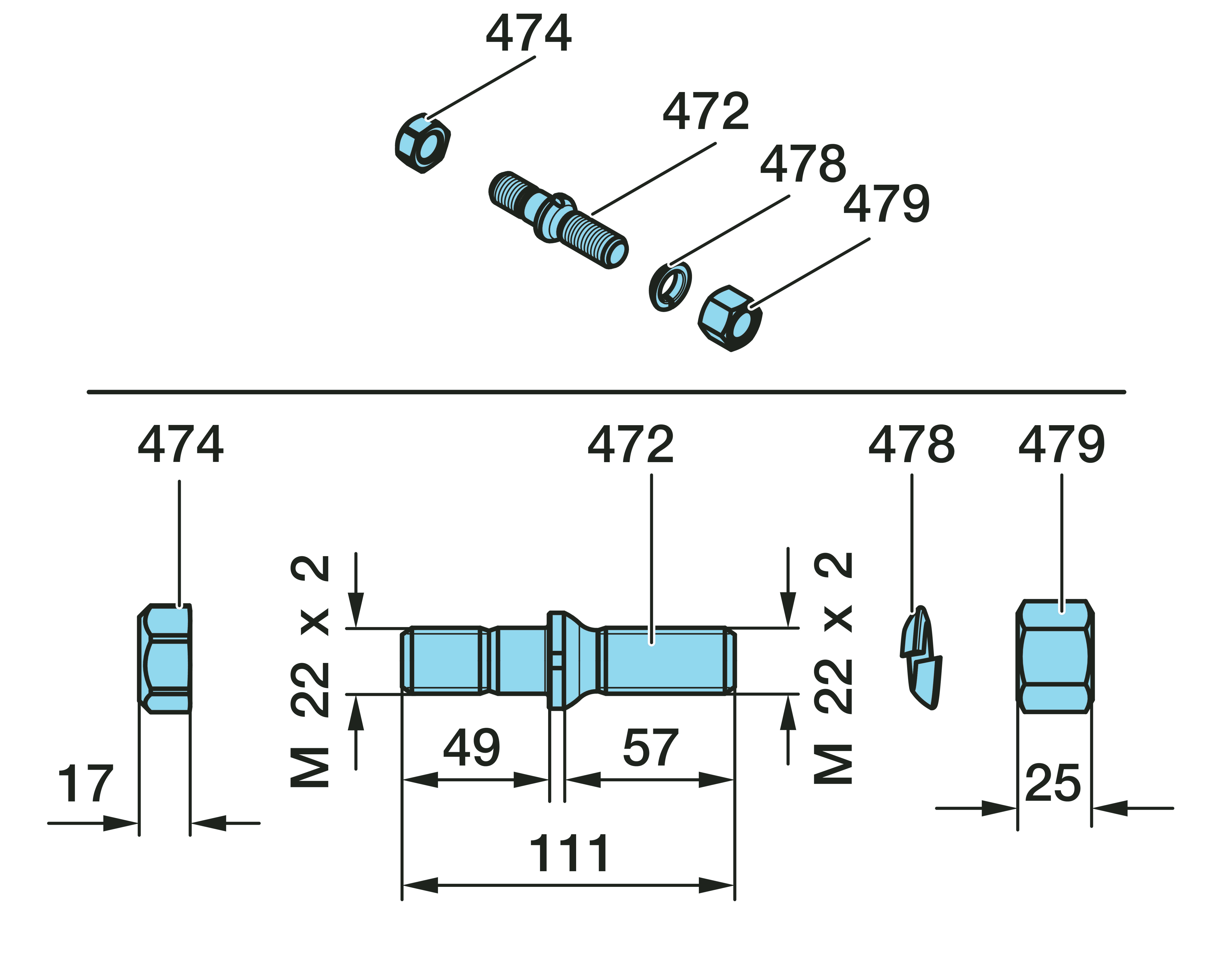 Dimension: M 22 x 2 / M 22 x 2 / 111 / 57 / 49