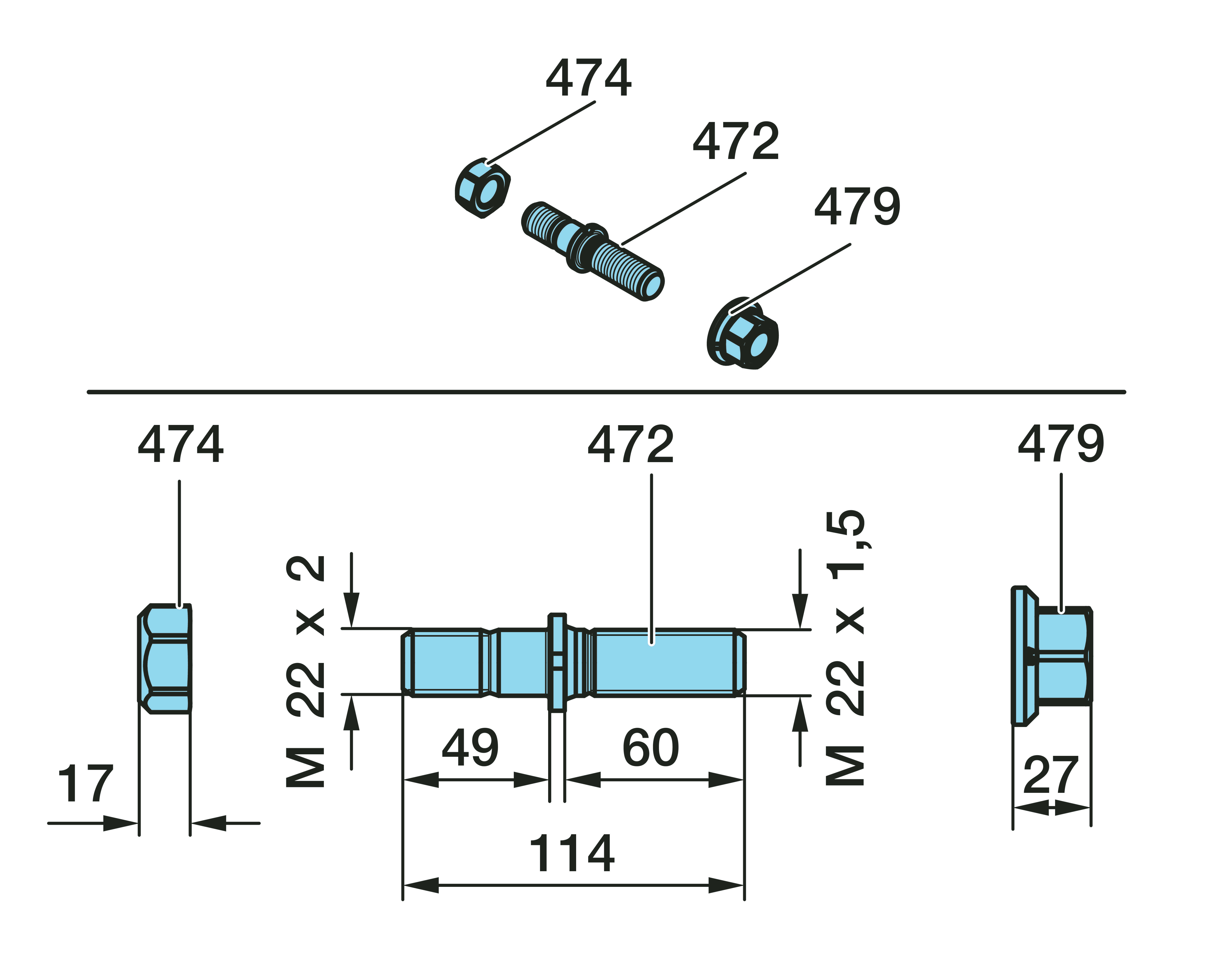 Dimension: M 22 x 1,5 / M 22 x 2 / 114 / 60 / 49