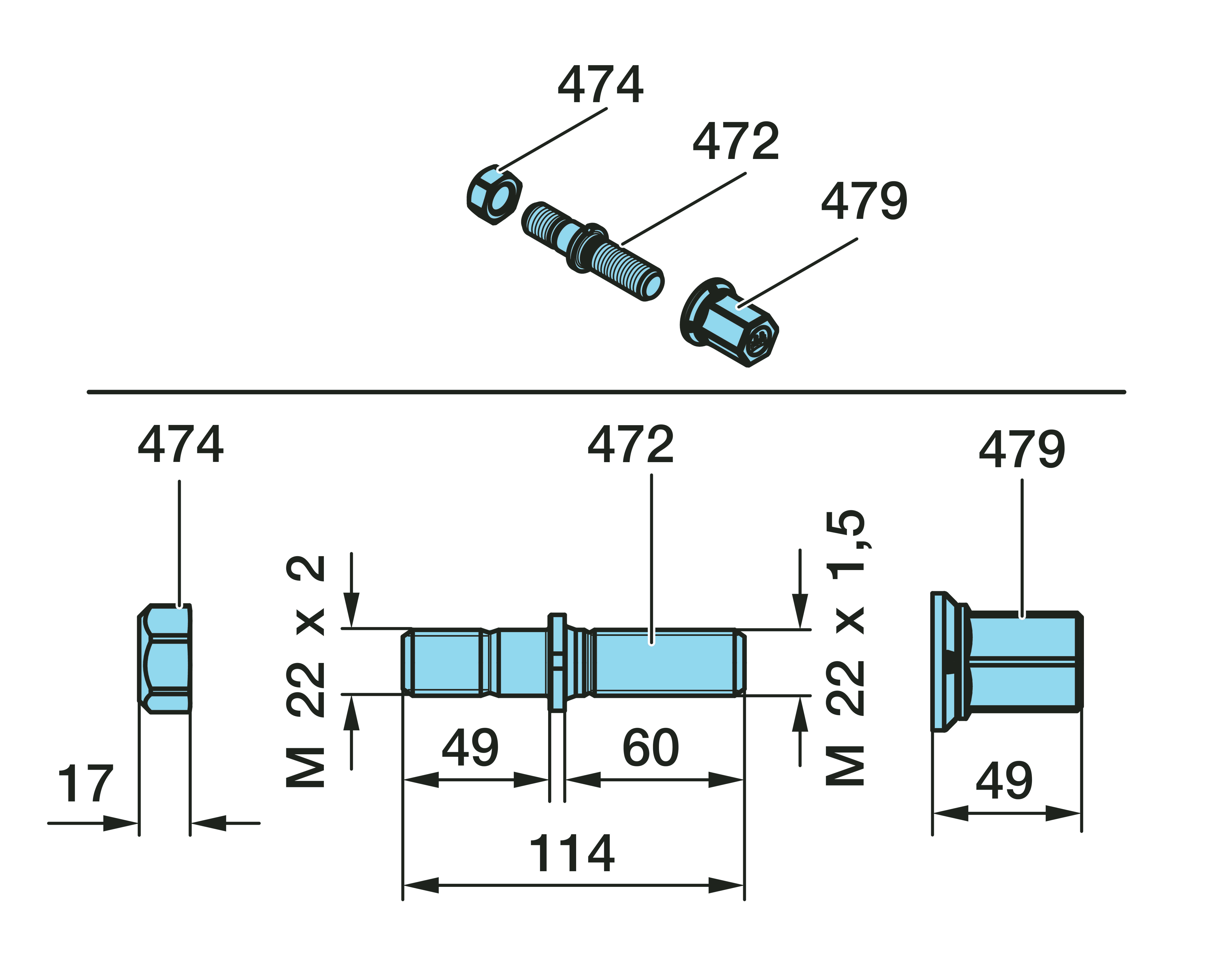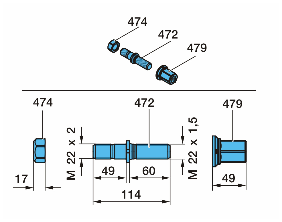Dimension: M 22 x 1,5 / M 22 x 2 / 114 / 60 / 49