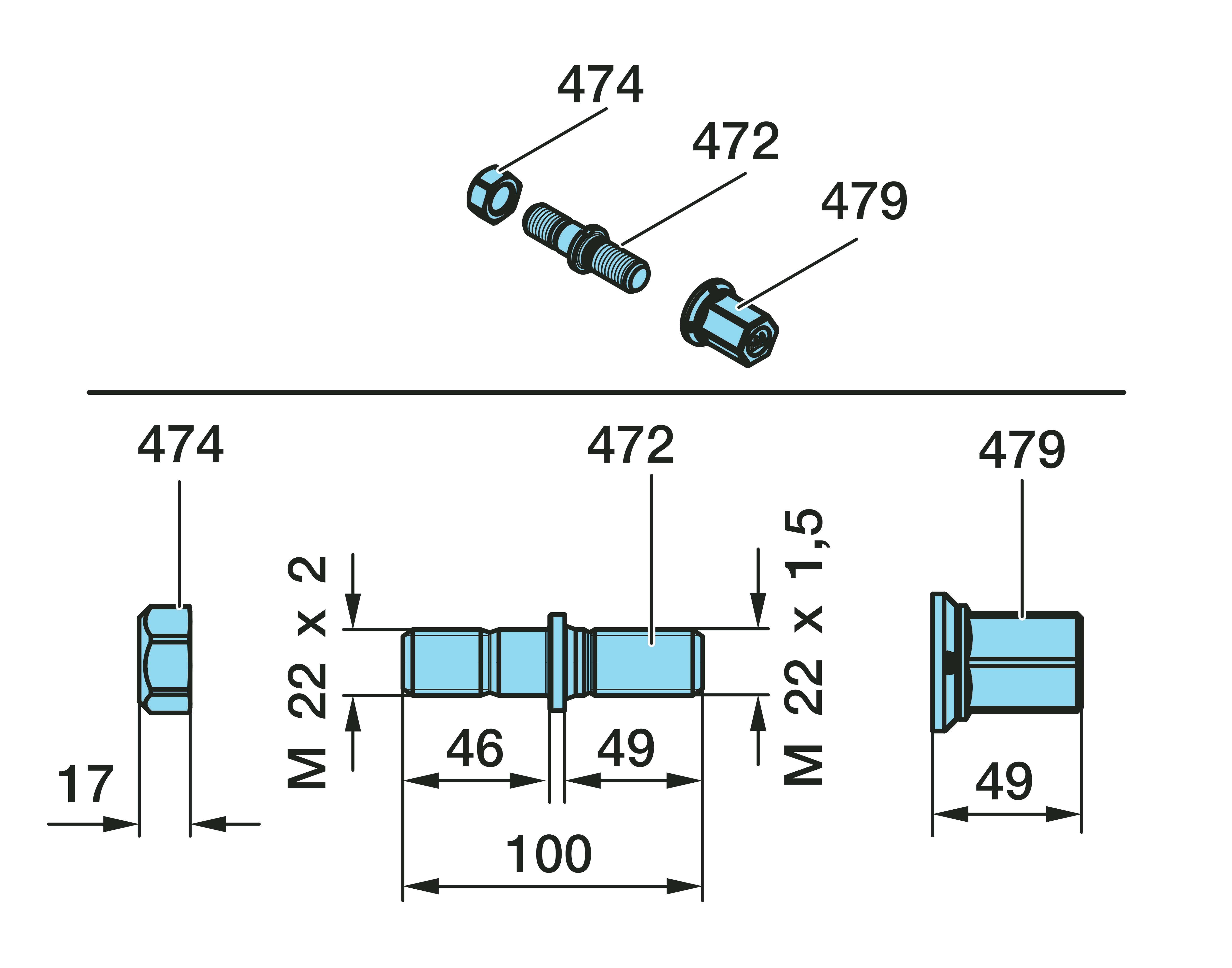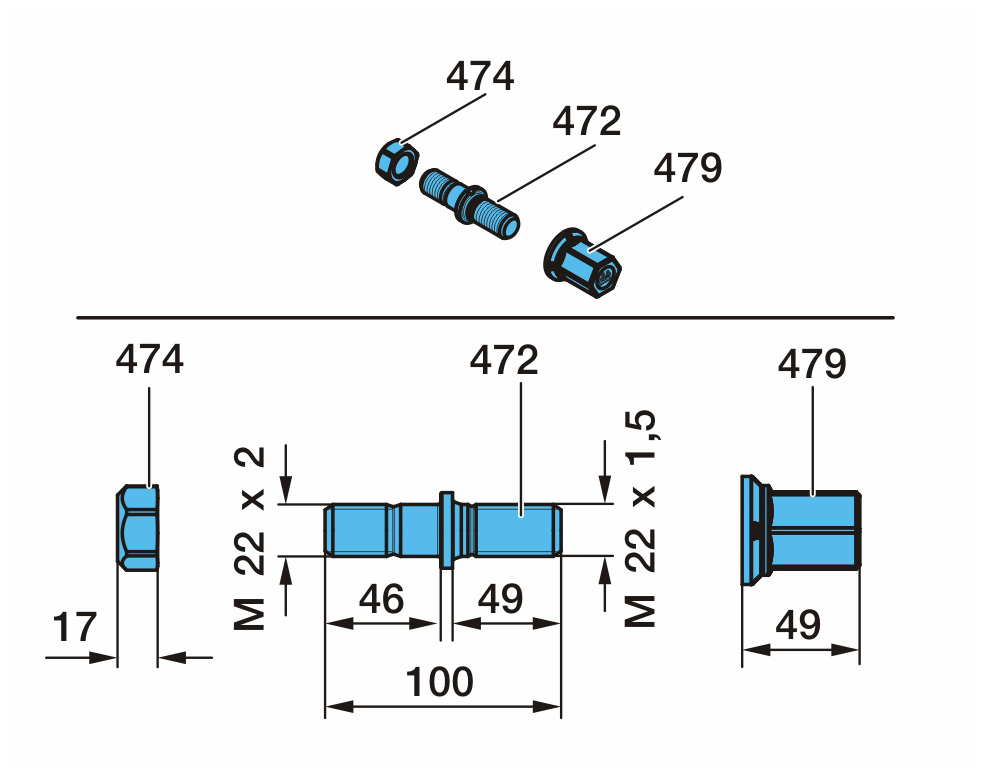 Dimension: M 22 x 1,5 / M 22 x 2 / 100 / 46 / 49