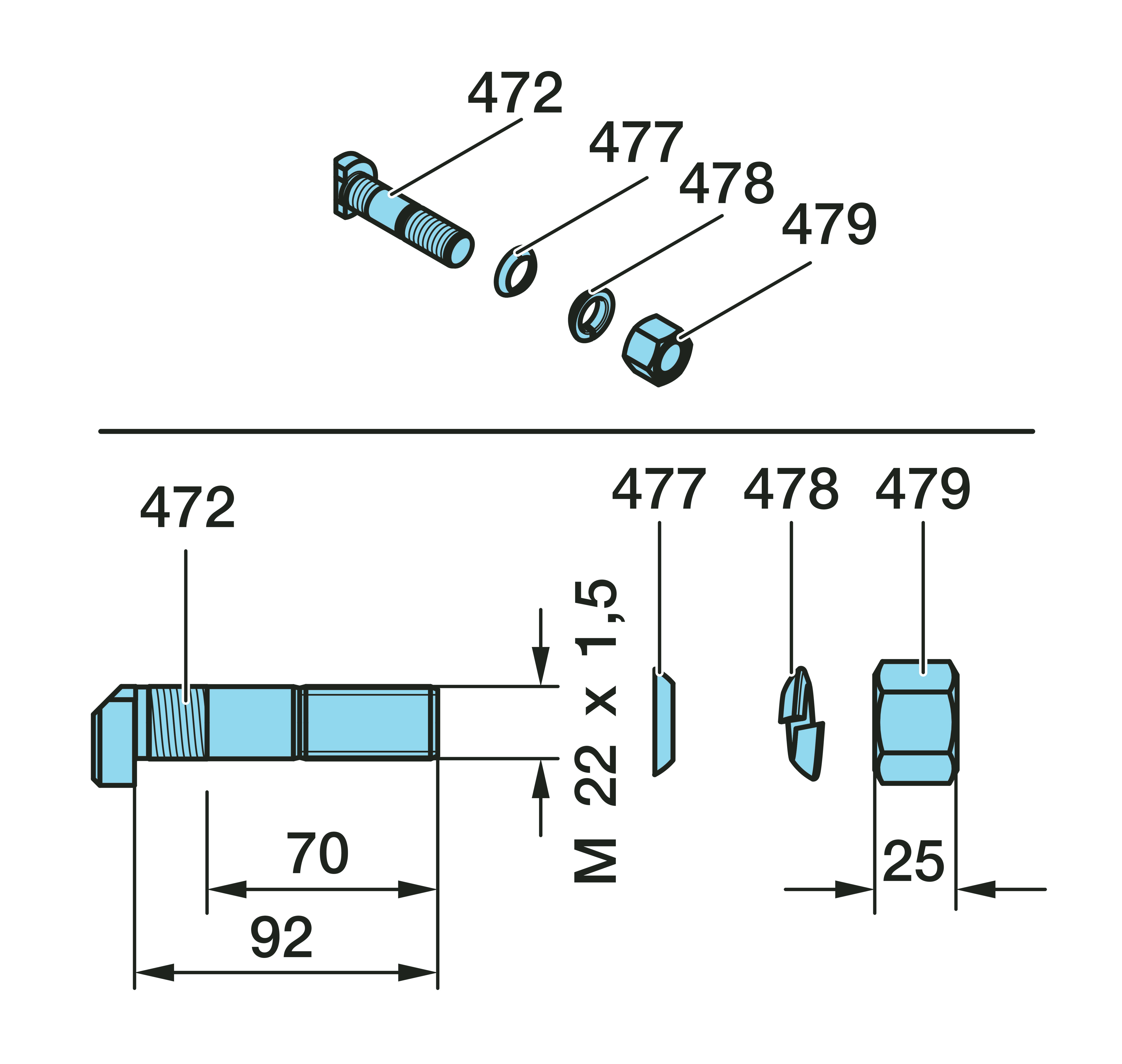Dimension: M 22 x 1,5 / 92 / 70